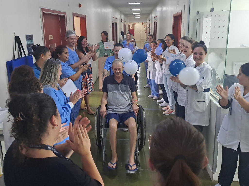 Ao longo dos mais de três meses de internação, o paciente também passou por diversas internações em Unidade de Terapia Intensiva (UTI), devido a episódios de infecção e descompensações clínicas. Mesmo diante das dificuldades, a evolução foi gradualmente favorável, resultado do trabalho integrado entre equipes médicas, de enfermagem, fisioterapia, nutrição e demais profissionais envolvidos.